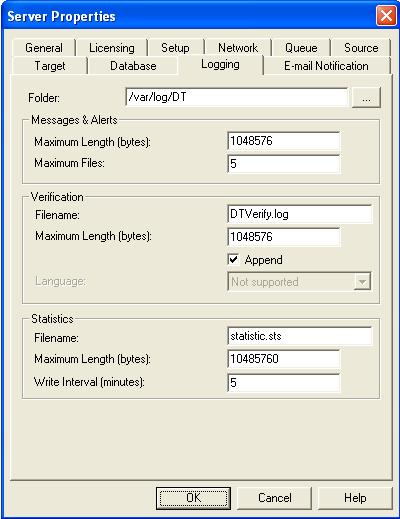 Changes made to the verification log in the Server Properties, Logging tab will apply to all connections from the current source machine.