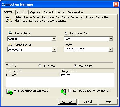 After you have created a replication set, you can establish a connection through the Connection Manager by connecting the replication set to a target.