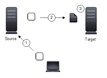 - In the event the source fails, the target stands in for the source. User and application requests are still sent to the source name or IP address, which are now running on the target.