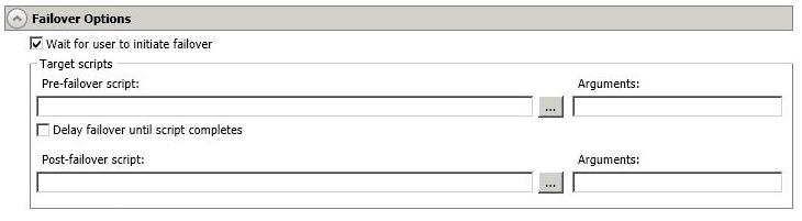 - Pre-failover script—This script runs on the target at the beginning of the failover process. Specify the full path and name of the script file.