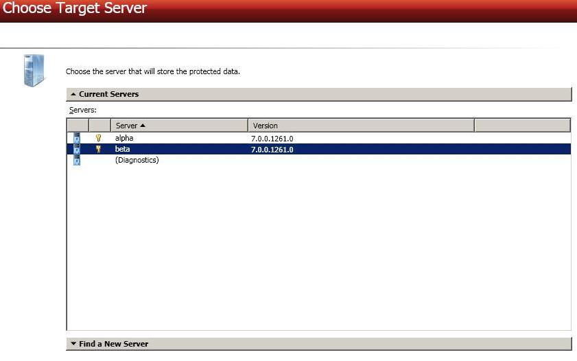 - Current Servers—This list contains the servers currently available in your console session. Servers that are not licensed for the workflow you have selected and those not applicable to the workload type you have selected will be filtered out of the list. Select your target server from the list.