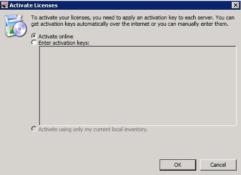 - Enter activation keys—Select this option on a non-Internet connected machine to manually enter activation keys. You can obtain these keys from https://activate.doubletake.com by entering the server information for each server manually or by uploading an export file of your license inventory. See Activating a single license for details on gathering the server information or Managing the Double-Take license inventory for details on creating an export file.