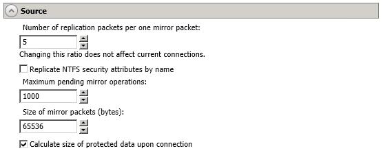 Calculate size of protected data upon connection—Specify if you want Double-Take to determine the mirroring percentage calculation based on the amount of data being protected. If you enable this option, the calculation will begin when mirroring begins. For the initial mirror, the percentage will display after the calculation is complete, adjusting to the amount of the mirror that has completed during the time it took to complete the calculation. Subsequent mirrors will initially use the last calculated size and display an approximate percentage. Once the calculation is complete, the percentage will automatically adjust down or up to indicate the amount that has been completed. Disabling calculation will result in the mirror status not showing the percentage complete or the number of bytes remaining to be mirrored.