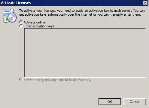 • Activate online—If you have Internet access, you can activate all of the licenses in your license inventory in one step by selecting Activate Online and then click OK.