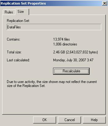 If your replication set contains a large number of files, for example, ten thousand or more, you may want to disable the calculation of the replication set size so that data will start being mirrored sooner. If calculation is enabled, the source calculates the file size before it starts mirroring. This can take a significant amount of time depending on the number of files and system performance. Disabling calculation will result in the mirror status not showing the percentage complete or the number of bytes remaining to be mirrored.