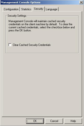 To remove cached credentials, select File, Options and select the Security tab. To remove the security credentials, enable Clear Cached Security Credentials and then click OK.