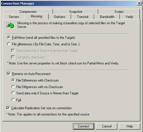Note: Data integrity cannot be guaranteed without a mirror being performed. This option is recommended for the initial connection.