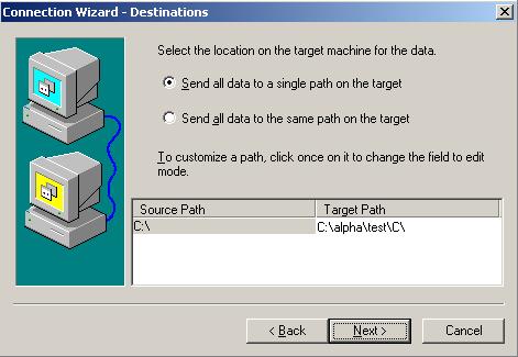 The Connection Wizard guides you through the process of protecting your data. It helps you select a source, identify the data from your source that will be included in the replication set, and select a target.