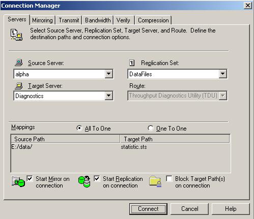 - From the Replication Console, open the Connection Manager to establish the connection.