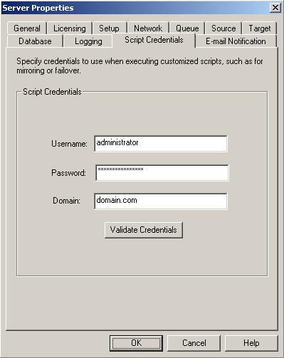 specify a Username, Password, and Domain to use when running the scripts. If you do not specify