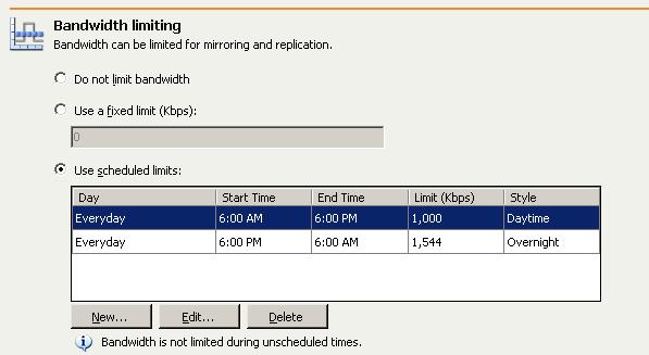 New schedule—Click New to create a new scheduled bandwidth limit. Specify the following information.