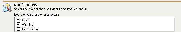 Notifications—Specify which events that you want to be sent via e-mail. You can select Error, Warning, and/or Information.