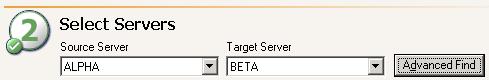 If no servers are populated in the lists (perhaps the server you need is in a child domain), click Advanced Find to add servers to the lists. Advanced Find is not available for all application protections. See Managing servers for more details on Advanced Find.
