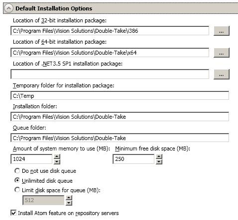 - Install Atom feature on repository servers—This option indicates if the Atom deduplication feature of Double-Take RecoverNow will be installed.