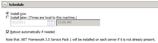 Specify when you want to perform the installations under the Schedule section.