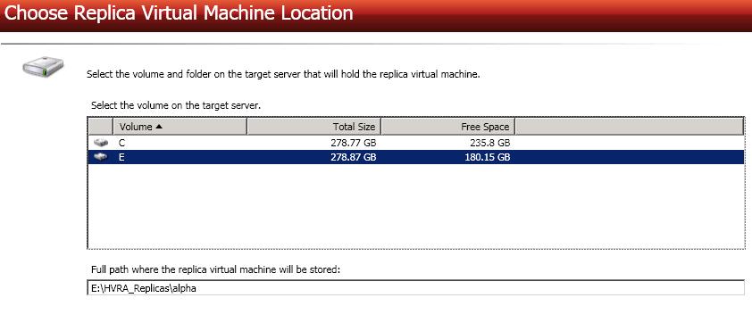 Select a location on the target for the replica virtual machine.