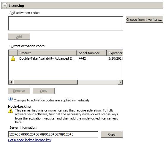 Server licensing identifies your Double-Take Availability activation codes.