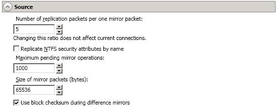 Use block checksum during difference mirrors—This option allows a file difference mirror to check each block of data, regardless of the file attributes. If this option is disabled, Double-Take Availability will assume files are synchronized if their attributes match.