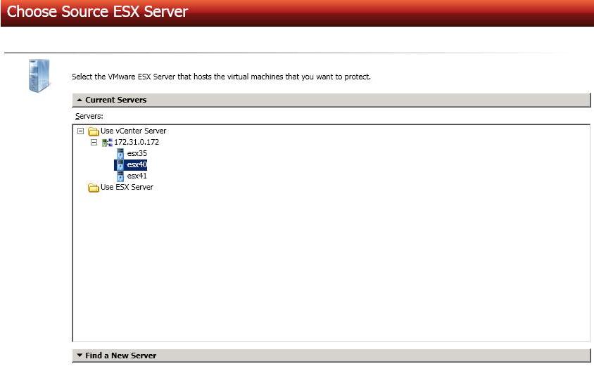 Choose your source server. This is the ESX host that contains the virtual servers that you want to protect.
