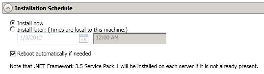 - Reboot automatically if needed—If selected, the server will automatically reboot after the installation, if a reboot is required.