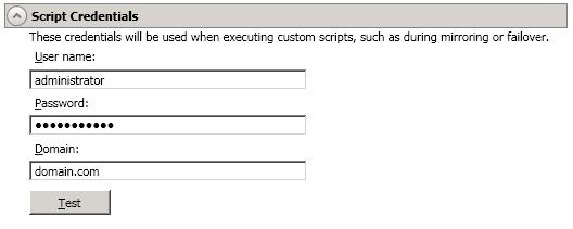 These credentials will be used when executing custom scripts for mirroring and failover.